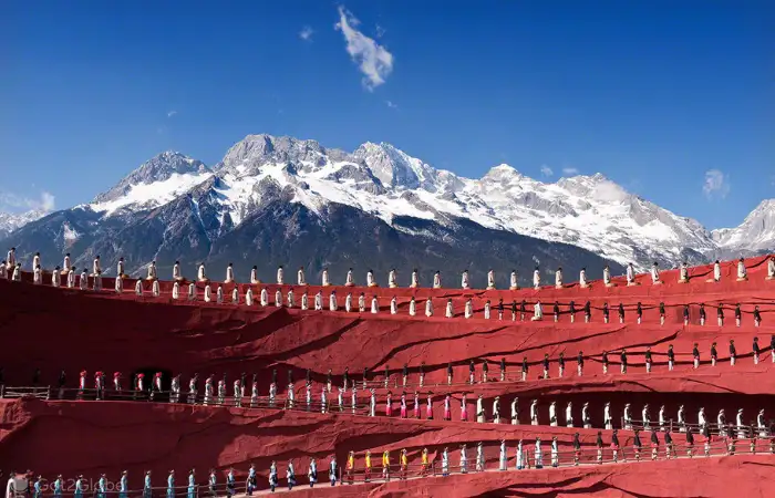 Sau đó, đoàn có thể tham qua xem show diễn “ Lệ Giang thiên cổ tình” – Một trong 4 show diễn nổi tiếng của vùng đất Vân Nam xinh đẹp. Show diễn kéo dài hơn 1 tiếng, tái hiện lại lịch sử hình thành và quá trình phát triển đi kèm những giai thoại của vùng đất Lệ Giang, chuyện tình đẫm lệ của người dân tộc Naxi….(chi phí tự túc).