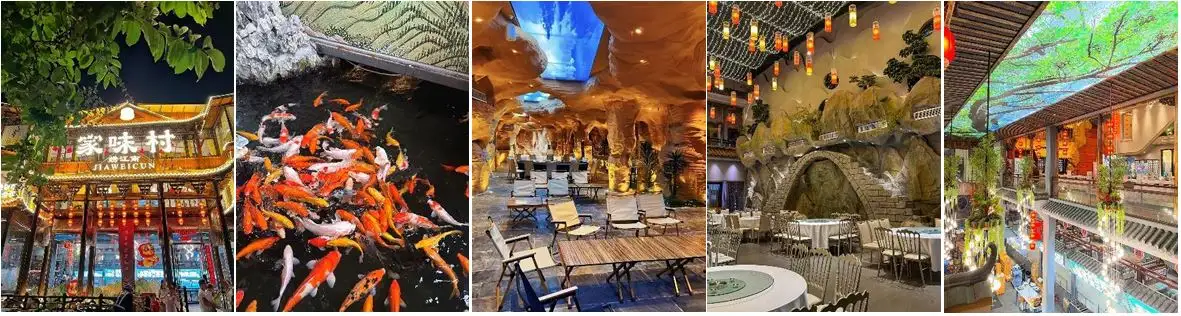 Đây là một nhà hàng đẹp đặc sắc có hồ cá to,bàn ăn nổi trên mặt nước và phong cách bày trí vô cùng đặc sắc